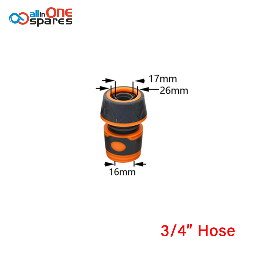 Robust 3/4" hose connector fits 17–18mm inner diameter hoses. Quick-connect design perfect for garden watering systems and pressure washers.